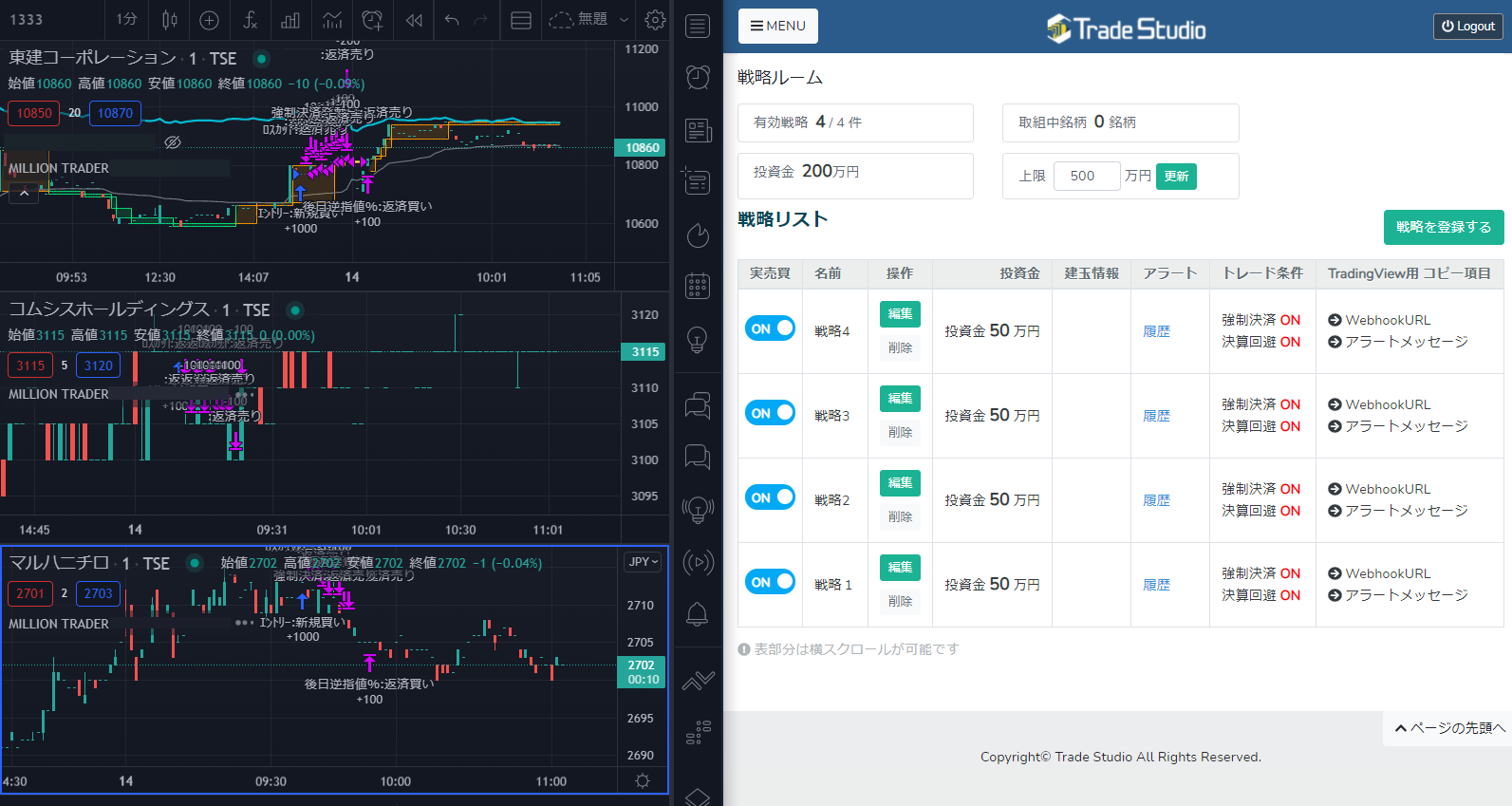 ・売買タイミングを見逃さない、最大400銘柄の同時自動管理